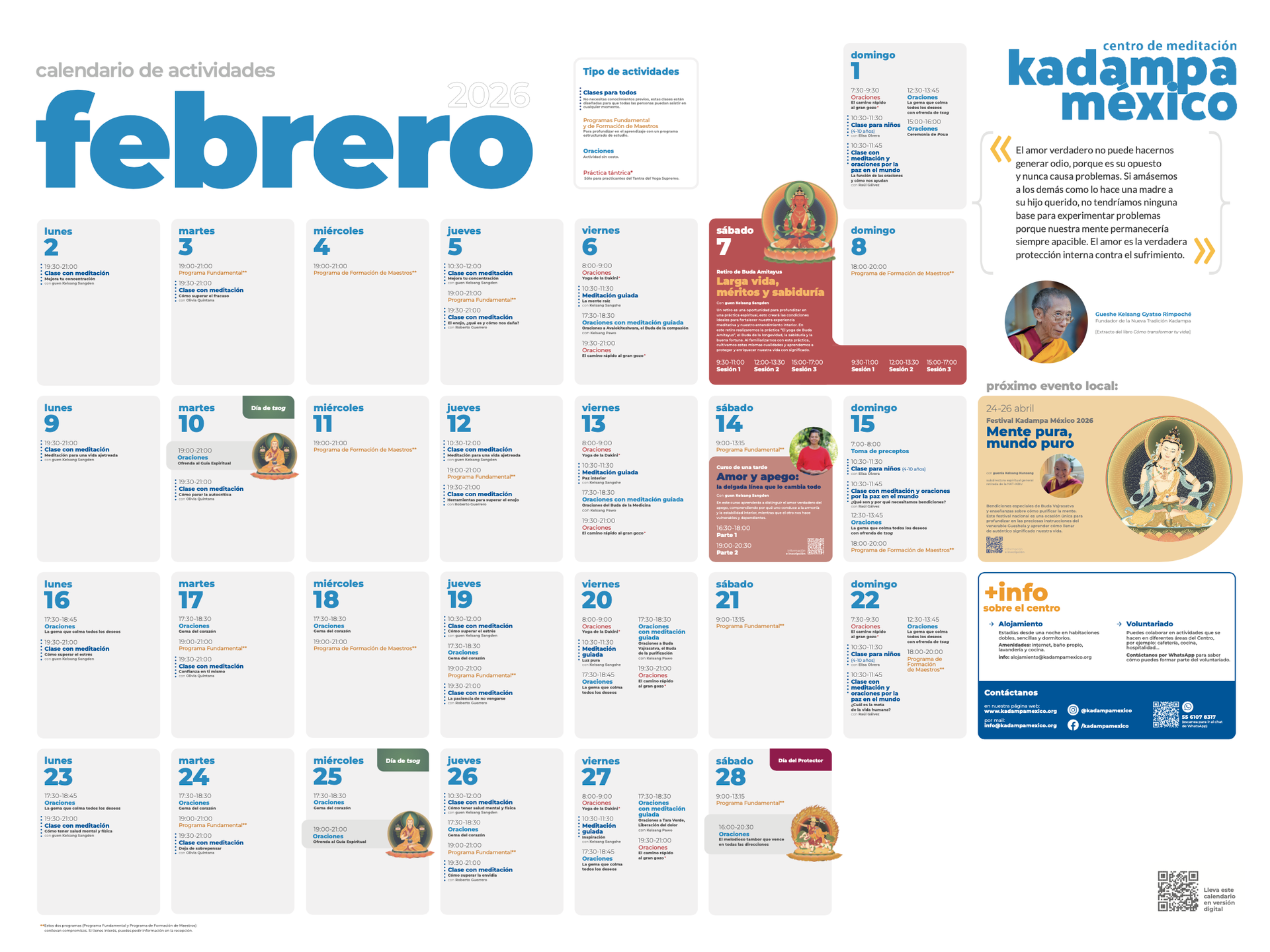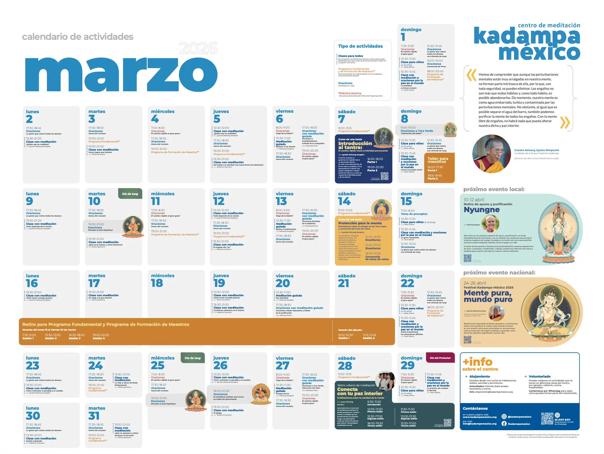 Recomendamos hacer la inscripción en línea previamente en tu cuenta de kadampamexico.org. Si no te es posible, puedes hacerlo en la recepción 30min antes del evento.
