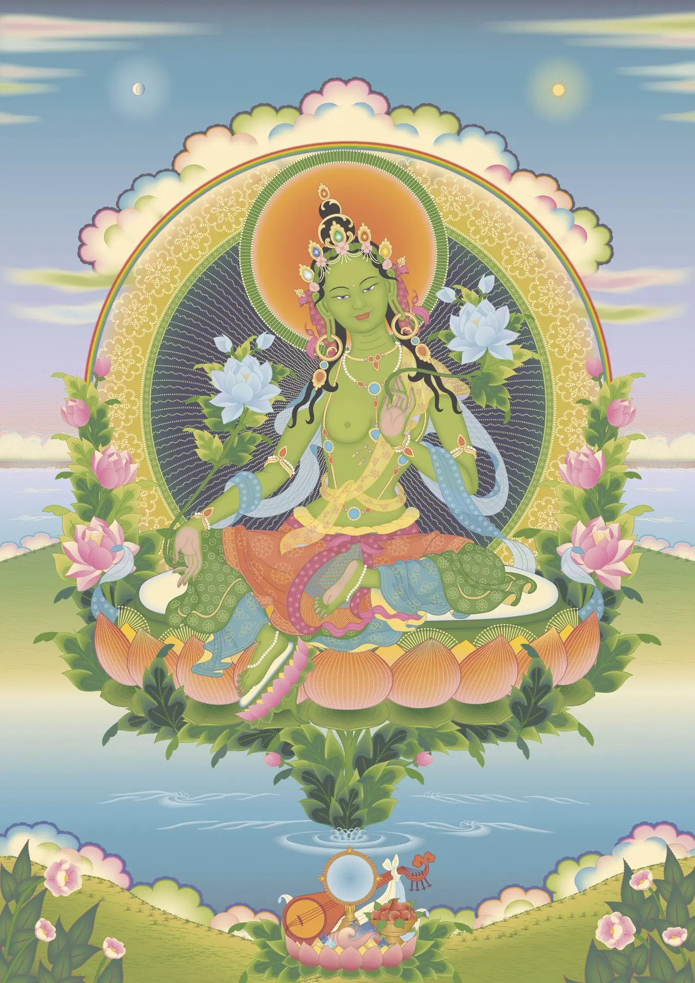 Tara es la Madre Sagrada que nos protege de todos los peligros, tanto externos como internos, quien nos proporciona las condiciones necesarias para nuestro adiestramiento interior y nos guía e inspira con sus bendiciones a lo largo del camino espiritual.